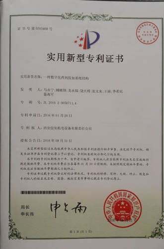 2016年8月31日,由公司申報的《一種數字化藥劑投加系統結構》獲得國家實用新型專利授權,取得了實用新型專利證書,專利號為:ZL 2016 2 0050711.4。證書的取得為公司技術創新工作再添新業績。